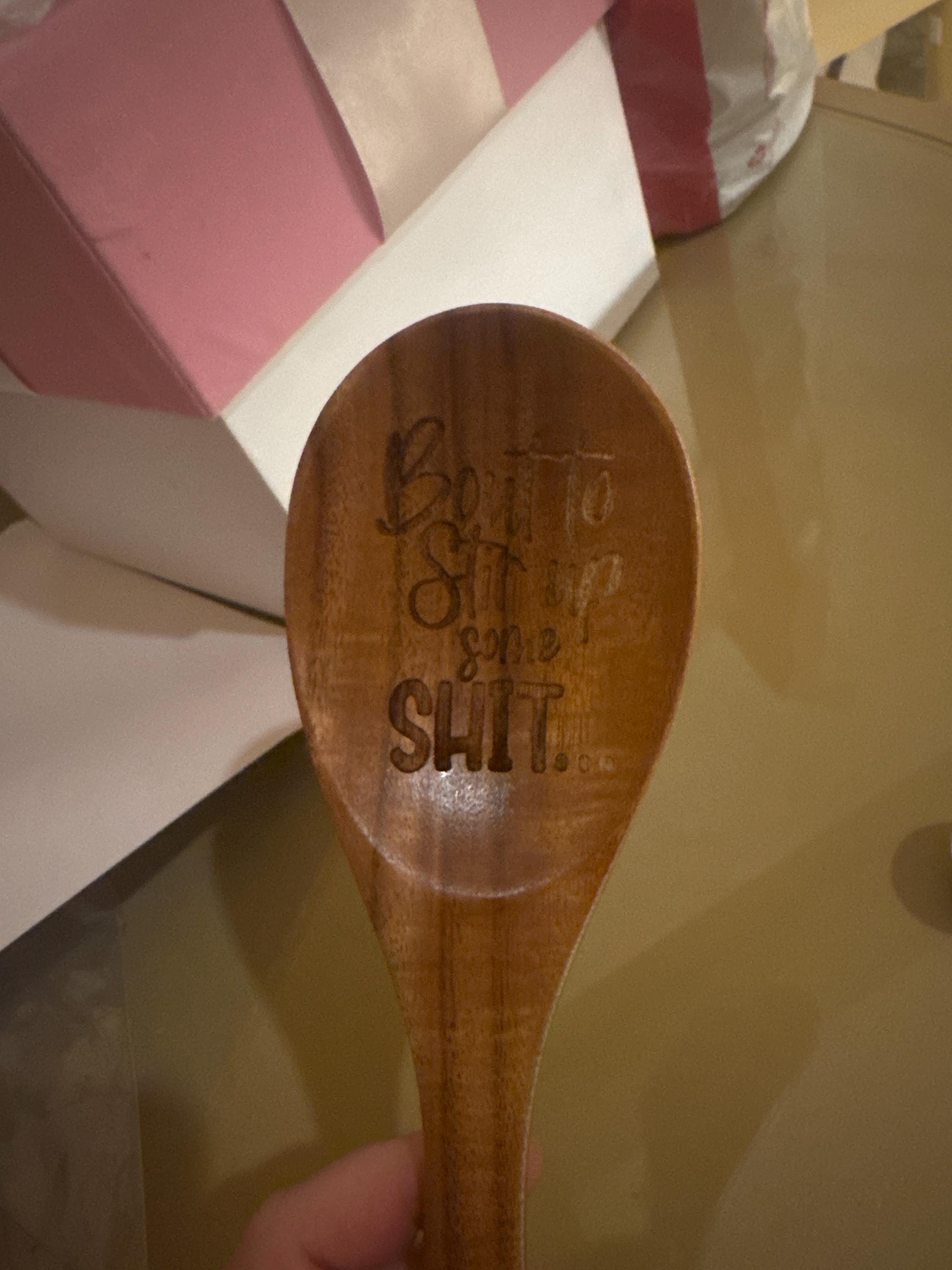 Add a dash of humor to your kitchen with this engraved wood spoon that's perfect for stirring up fun and flavor. Crafted from durable teak wood, this mixing spoon makes a memorable housewarming gift or a hilarious gag gift for friends and family who love to cook. Whether you're baking or cooking, this unique spoon brings personality and practicality to every meal.
